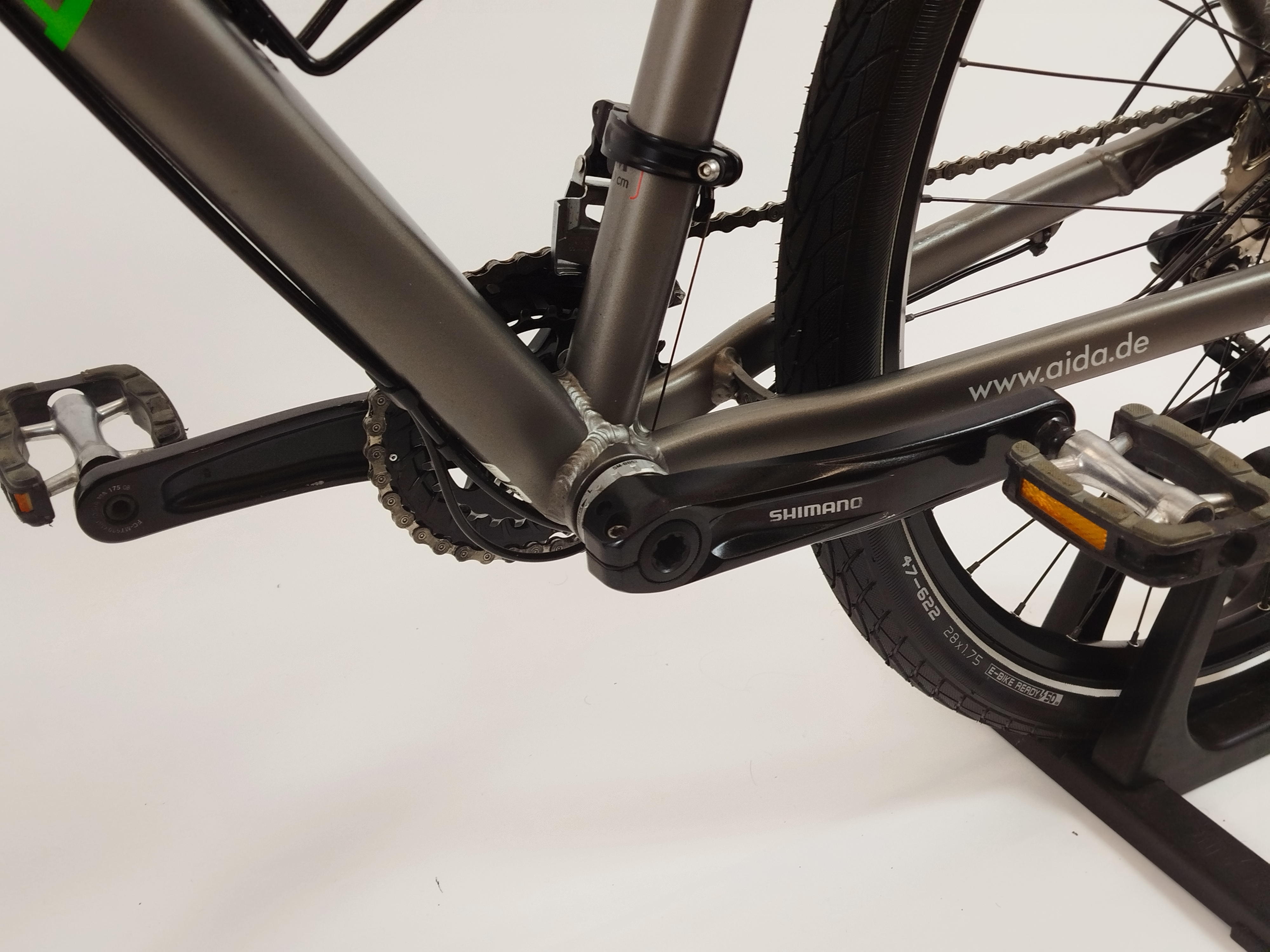 - Kurbelgarnitur: Shimano FC-MT 500, Länge 175mm Bremsen:
