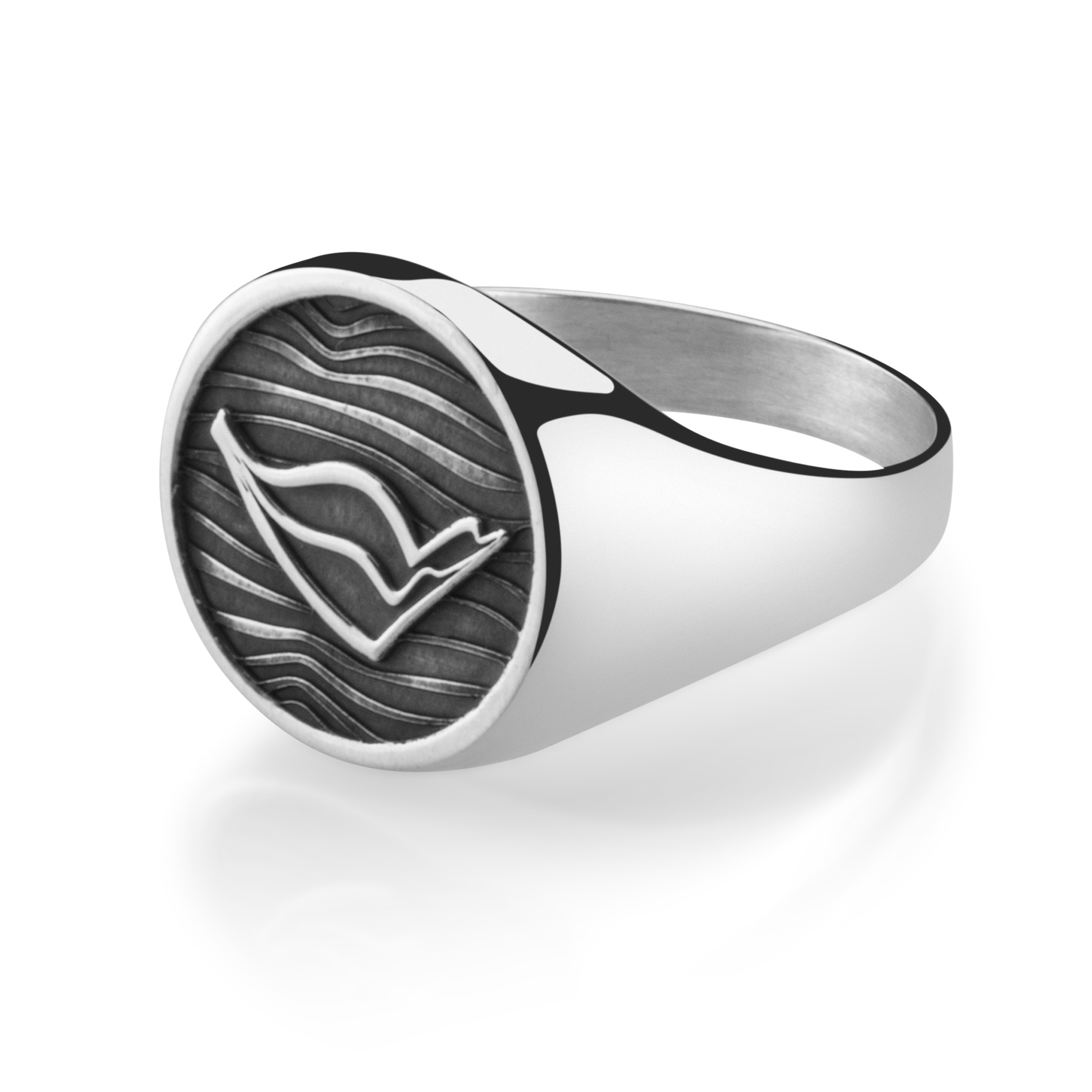 Mit dem AIDA Damenring mit Kussmund auf Wellen aus 925er Sterling Silber haben Sie das AIDA-Lächeln immer bei sich. Der bekannte Kussmund ziert die Siegelfläche dieses Ringes und ist umgeben von den rauschenden Wellen der Weltmeere. Die elegante Form erinnert an einen klassischen Siegelring, jedoch ist der Kussmund so aufgebracht, dass er richtig zu erkennen ist. Er ist erhaben und setzt sich vom Untergrund ab. Die Höhenunterschiede können Sie sehen und fühlen. Der Damenring ist an den Seiten taillierter gearbeitet als der Herrenring. Er wirkt dadurch noch filigraner.
