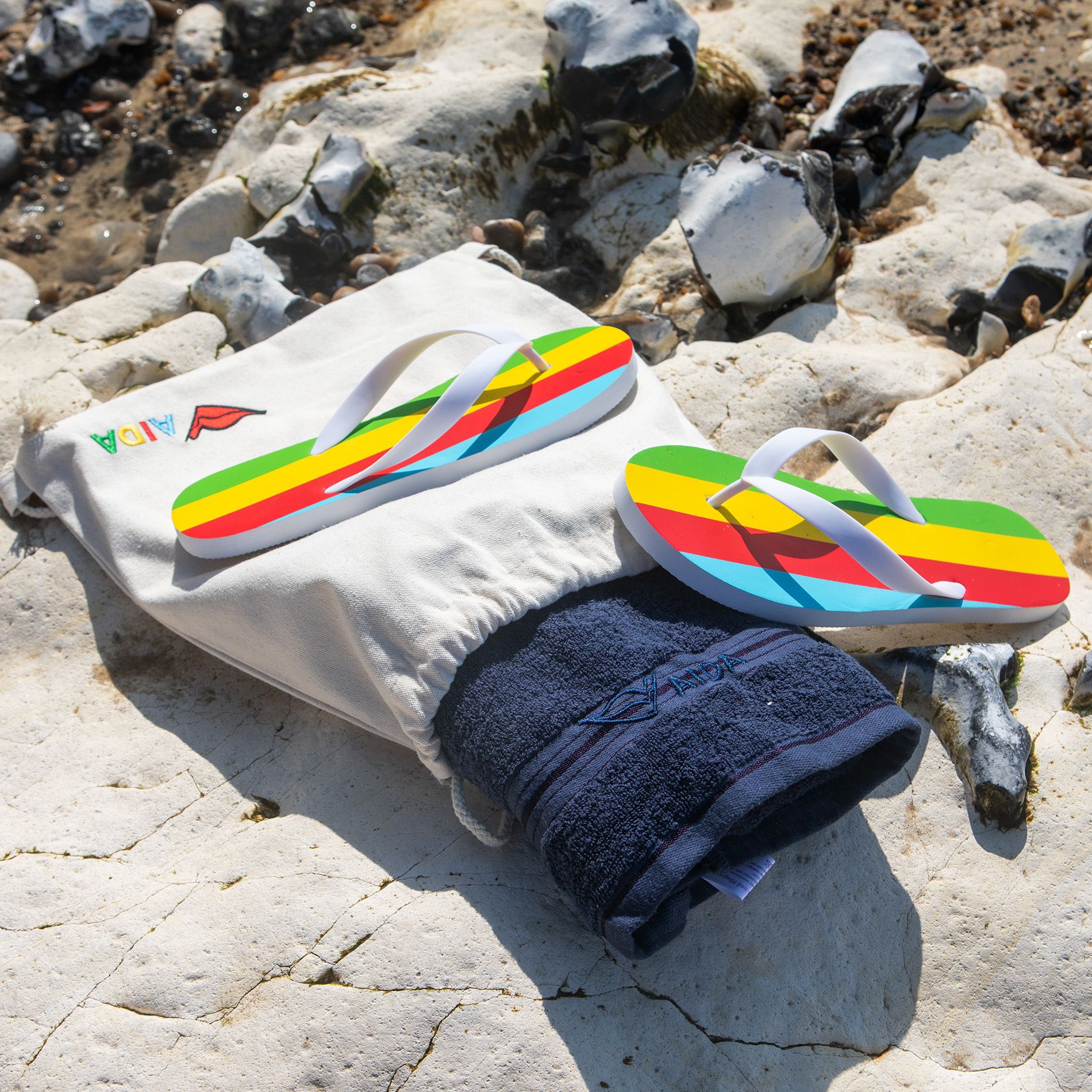 Jedes Handtuch ist mit dem AIDA Logo bestickt. Die hochwertige Stickerei verleiht dem Handtuch eine besondere Note und erinnert an die unvergesslichen Momente auf den Ozeanen.