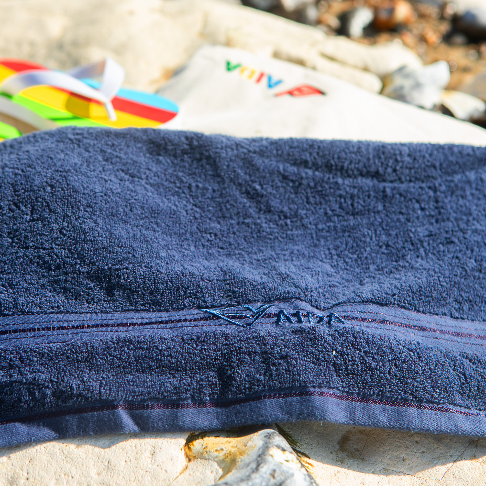 Jedes Handtuch ist mit dem AIDA Logo bestickt. Die hochwertige Stickerei verleiht dem Handtuch eine besondere Note und erinnert an die unvergesslichen Momente auf den Ozeanen.
