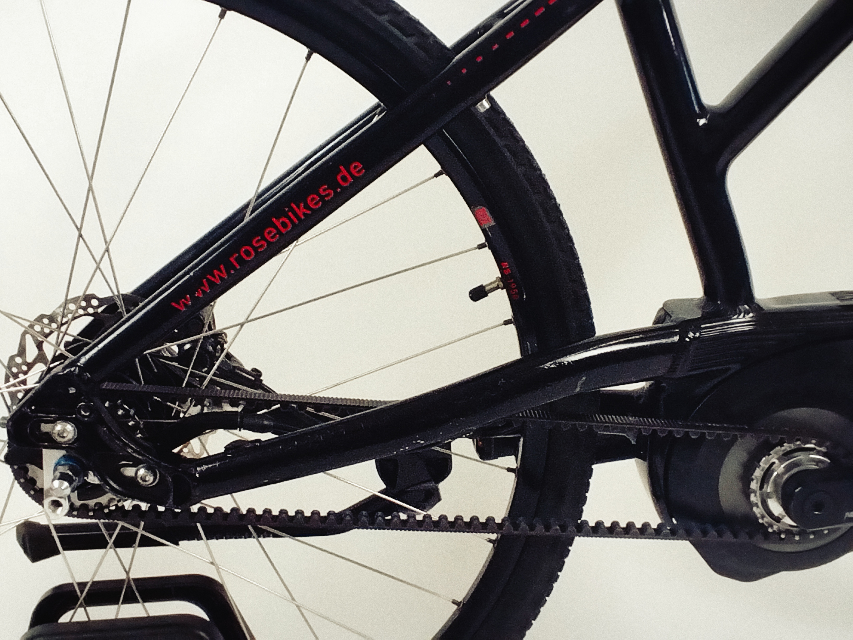 - Antrieb: Gates Carbon Drive 113 Zähne, Ritzel vorne und hinten 22 Zähne
