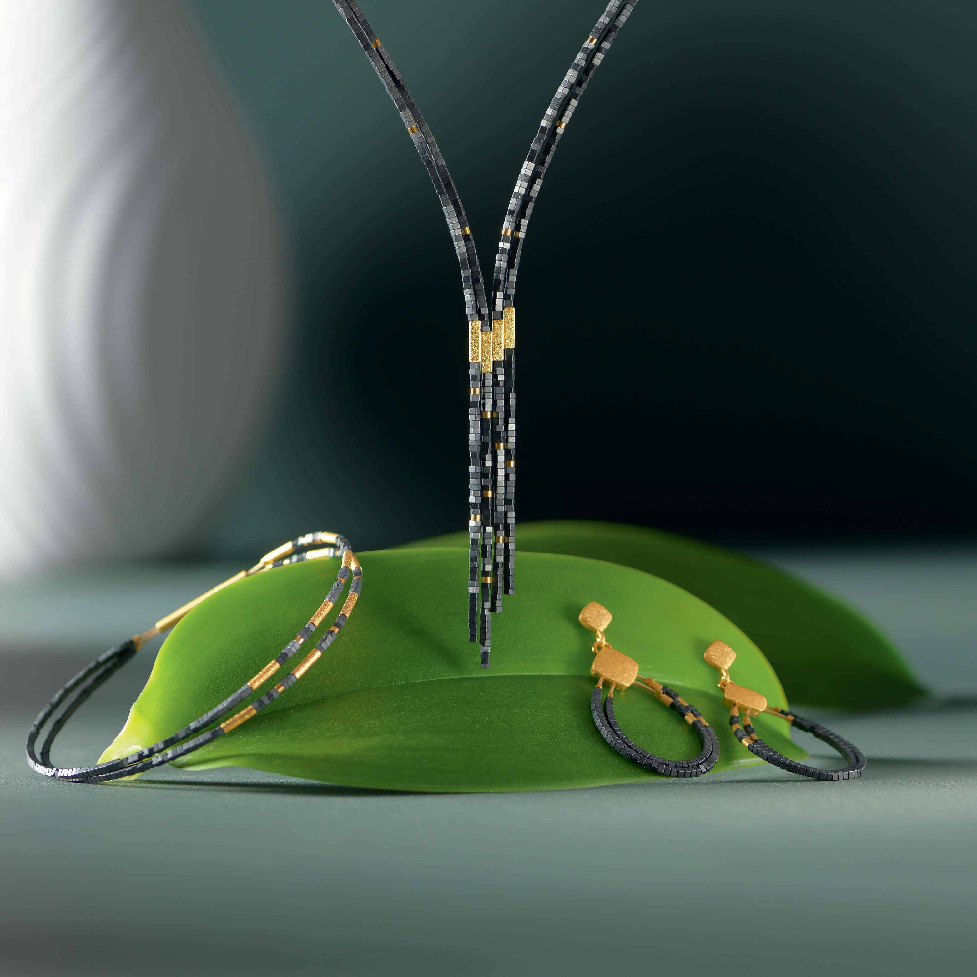 Die Schmuckstücke aus der BERND WOLF Manufaktur werden mit einer exzellenten 24-Karat Goldplattierung in Premiumqualität mit mehr als 50 Arbeitsschritten für jedes Element veredelt. Das Grundmaterial aller Schmuckstücke ist 925 Sterlingsilber. BERND WOLF verarbeitet ausschließlich Gold aus zertifizierten, ethisch einwandfreien Quellen. Mit seinem edlen metallischen Glanz fasziniert der elegante Hämatin. Er wird aus Eisenerz gewonnen und in einem besonderen Verfahren für BERND WOLF hergestellt.
