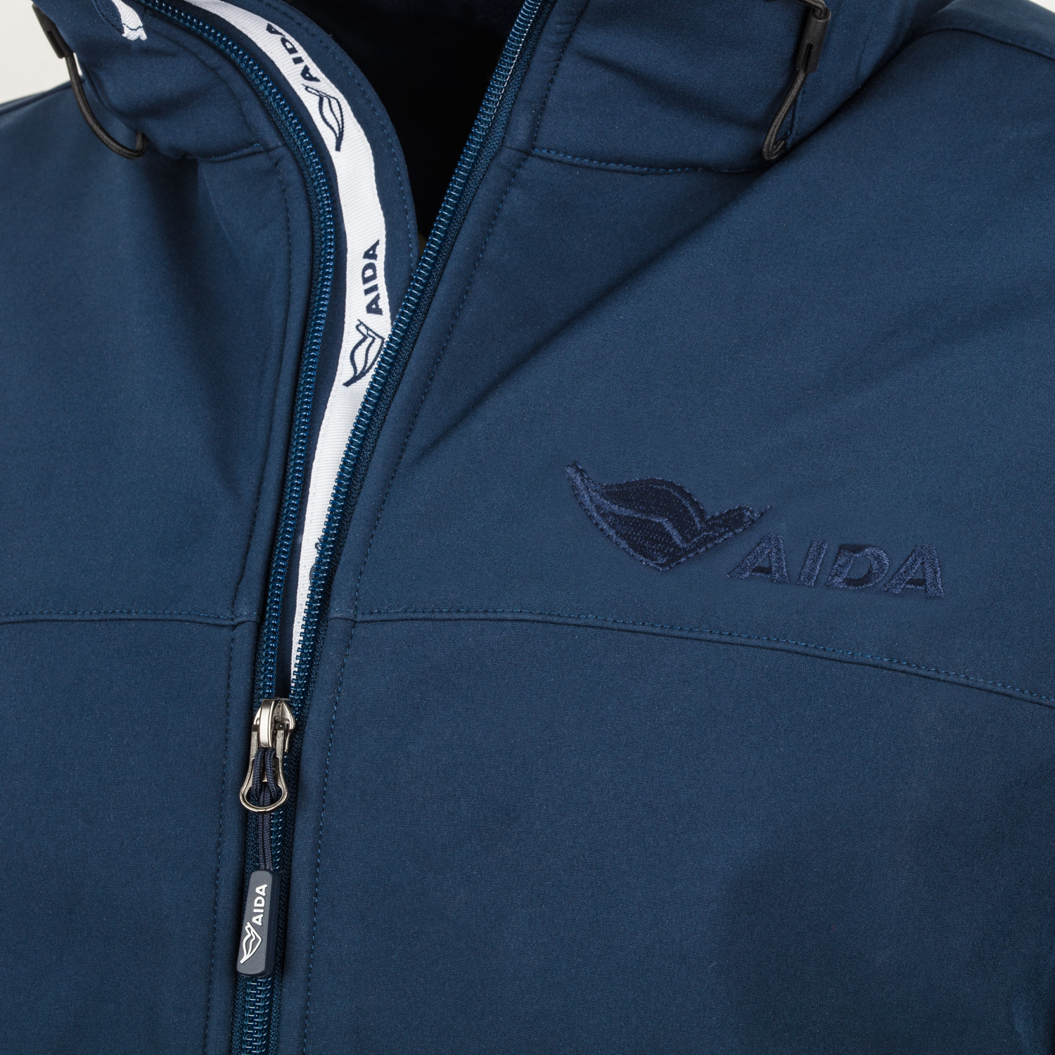 Mit der AIDA Fan Kollektion kann sich jeder Fan des Kussmunds das AIDA Urlaubsgefühl nach Hause bestellen. Die Damen Softshelljacke ist in navy, einem dunklem blau und in verschiedenen Größen erhältlich. Der bekannte AIDA Kussmund ist im dezent im Farbton der Jacke aufgestickt. Mit den hochwertigen Materialien können Sie auch die rauen Bedingungen an Deck genießen und werden in der kalten Jahreszeit gewärmt!