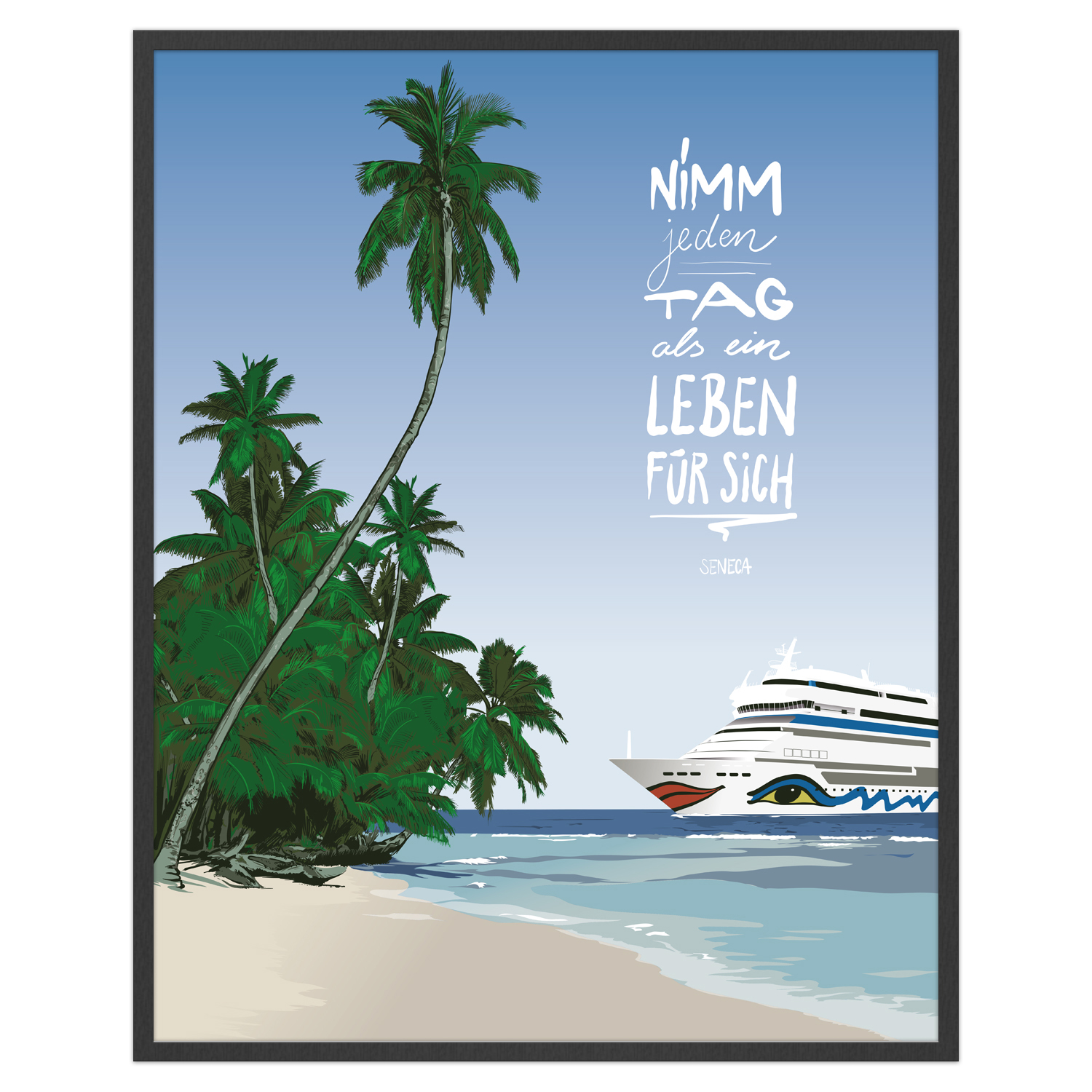 Darstellung eines neuen AIDA Spruchmotivs: "Nimm jeden Tag als ein Leben für sich" - Henning Bruer. Auf hochwertigem Strukturpapier gedruckt.