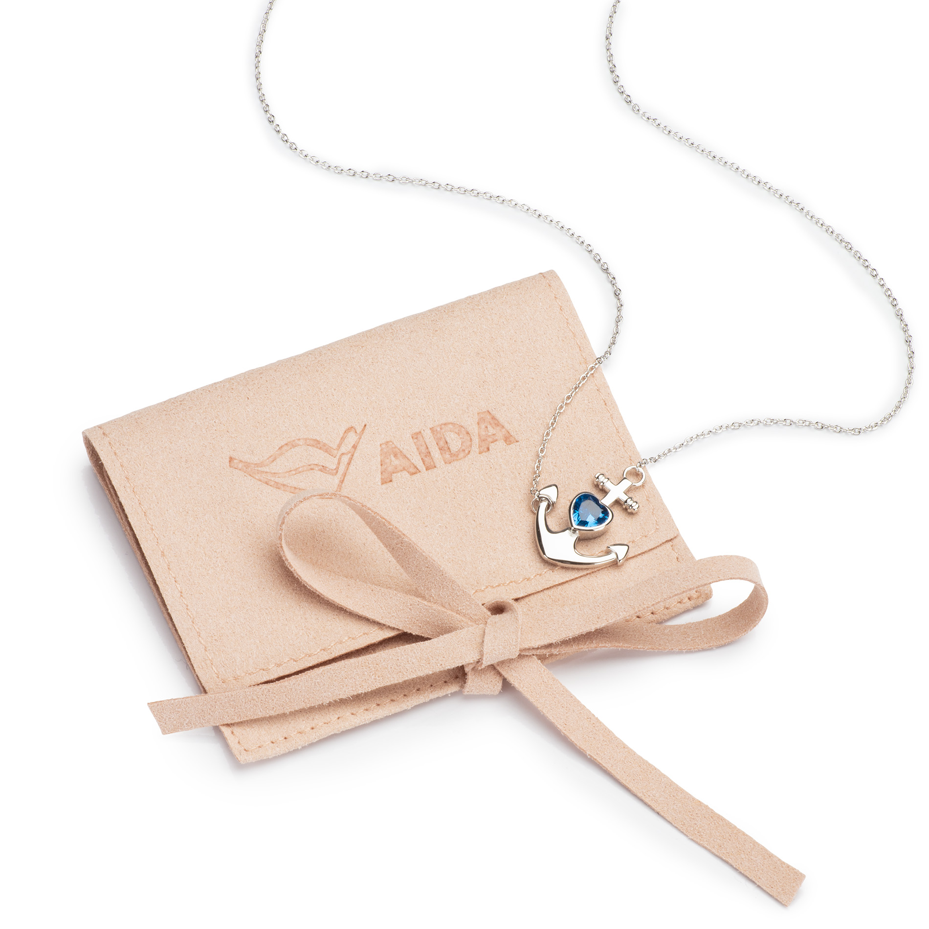 Für Meerliebhaber, die den maritimen Lebensstil lieben, ist die Halskette aus 925er Sterling Silber ein wunderbares Accessoire. Der blau funkelnde Zirkoniastein erinnert an schöne Zeiten auf dem Meer und zaubert AIDA Feeling in den Alltag. Natürlich ist es auch das perfekte Schmuckstück für den nächsten AIDA Urlaub.