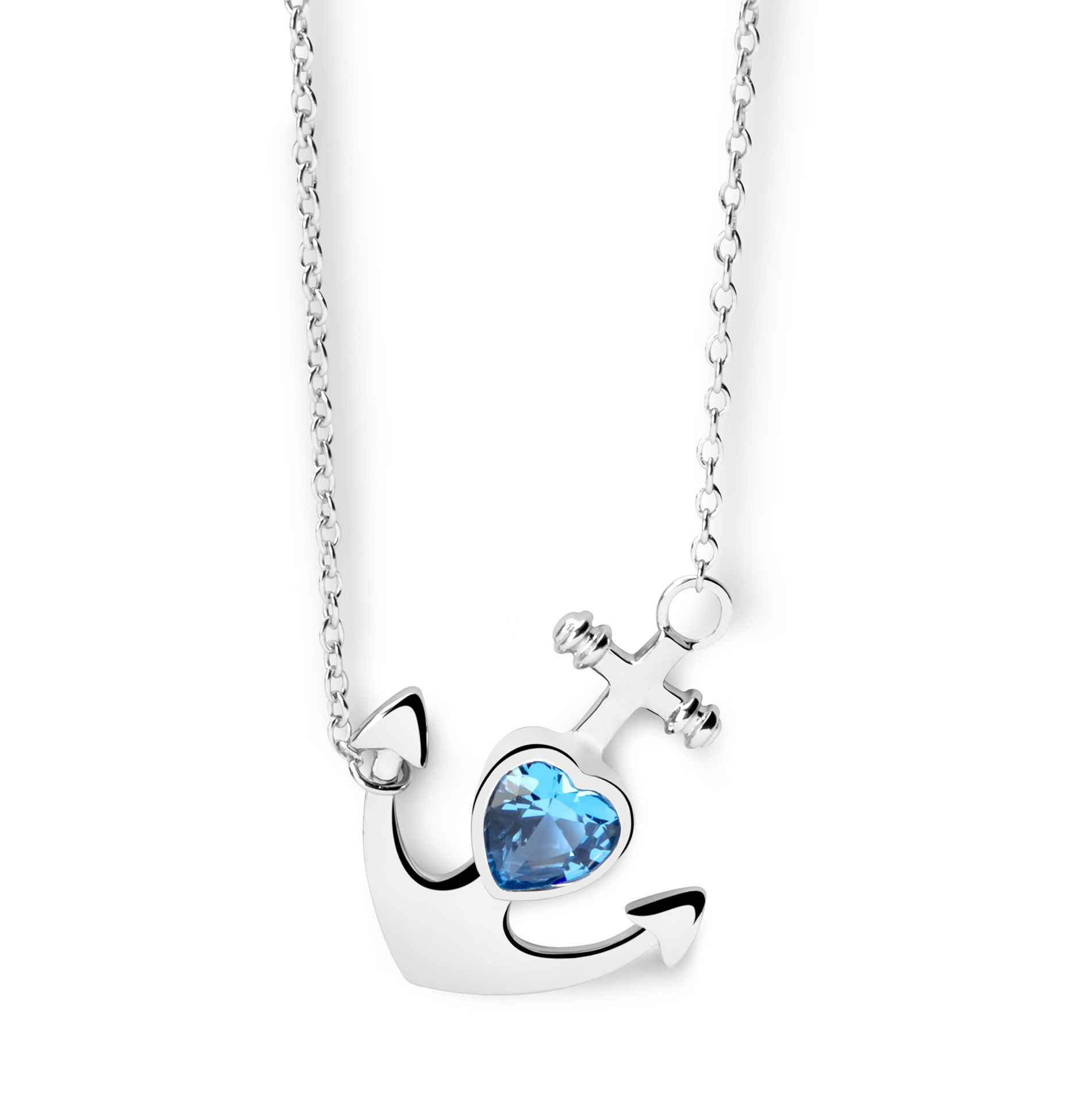 Kette aus Silber mit Anker und Zirkoniastein in blau
