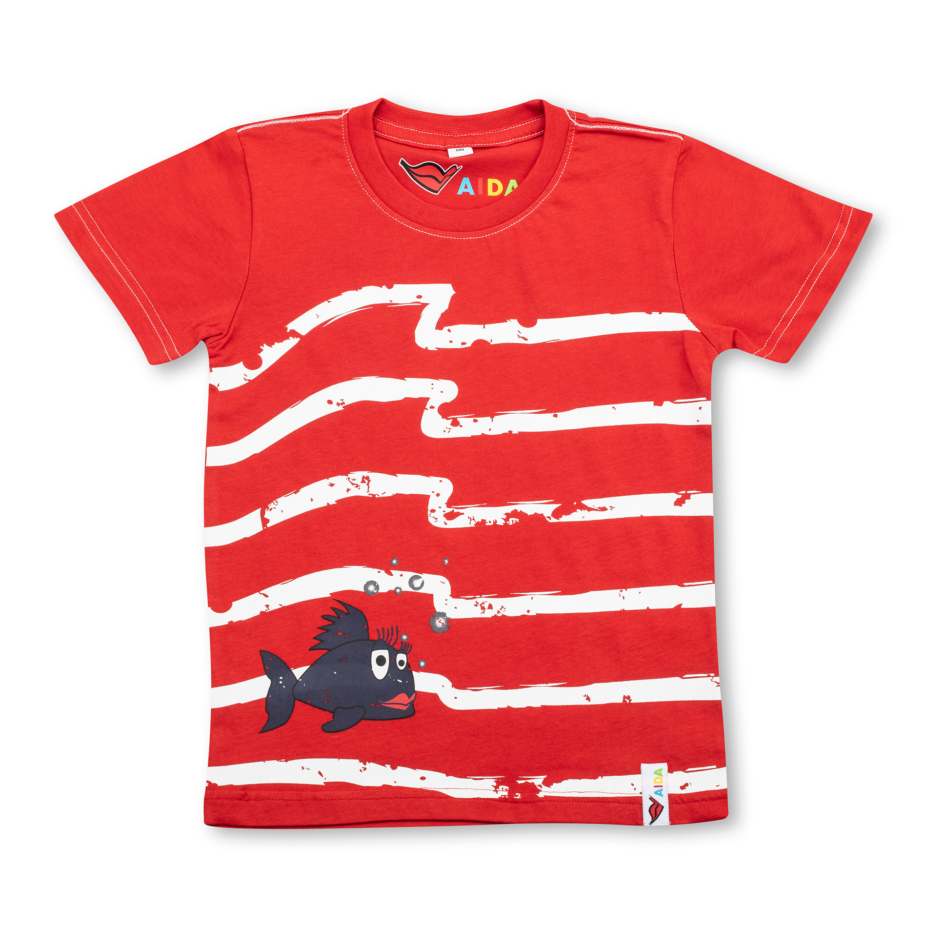 Produktinformationen "Kinder T-Shirt mit Fisch Aufdruck rot und navy"
