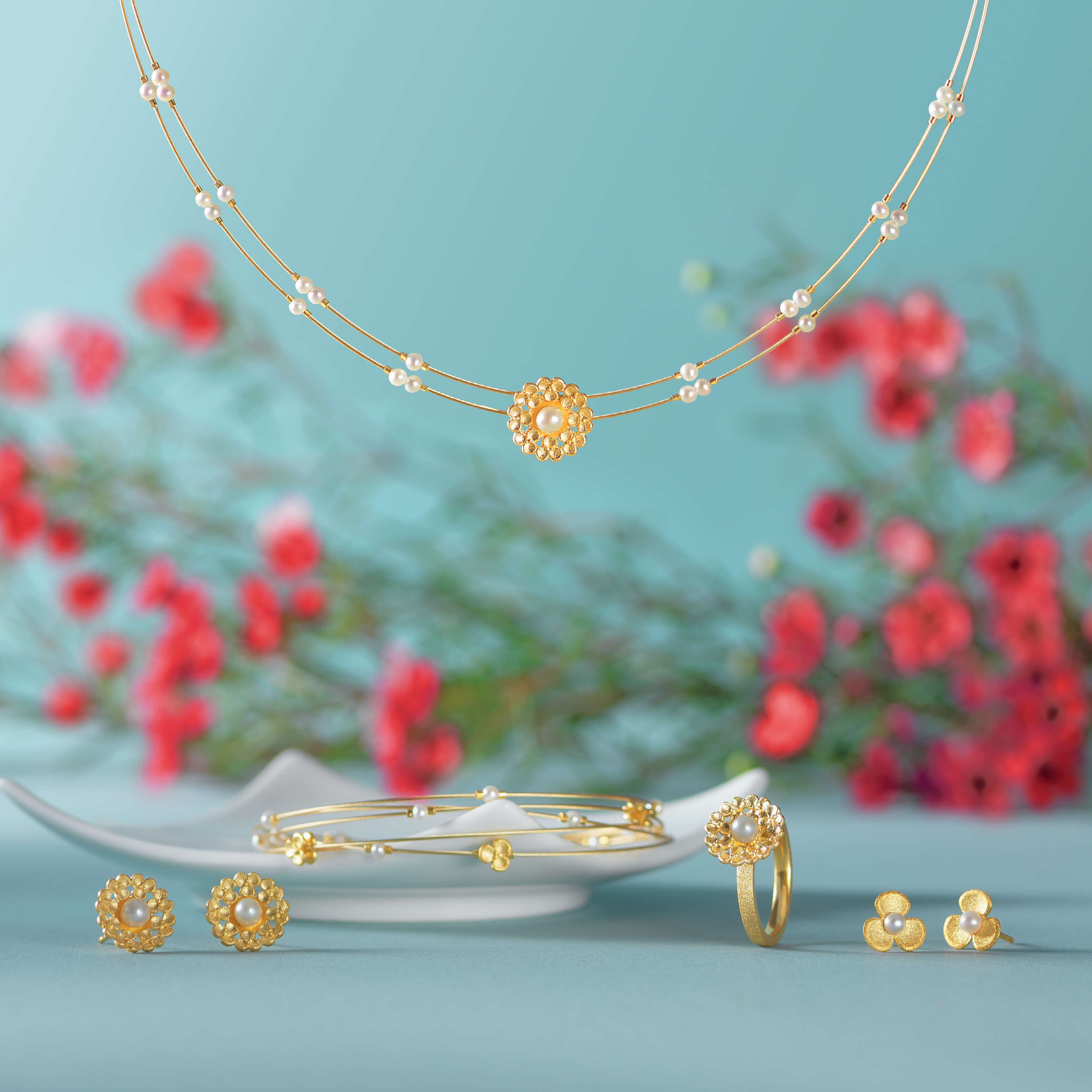 Mit spannungsvollen, vielfältigen Blütenarrangements verzaubert die florale Designlinie „flowertimes“ von BERND WOLF. Die Designerin Yvonne Wolf hat mit den dreiblättrigen Blüten besondere, formschöne Schmuckelemente gestaltet. Mit Liebe zum Detail wurden die stilisierten Staubgefäße und Blüten gruppiert.