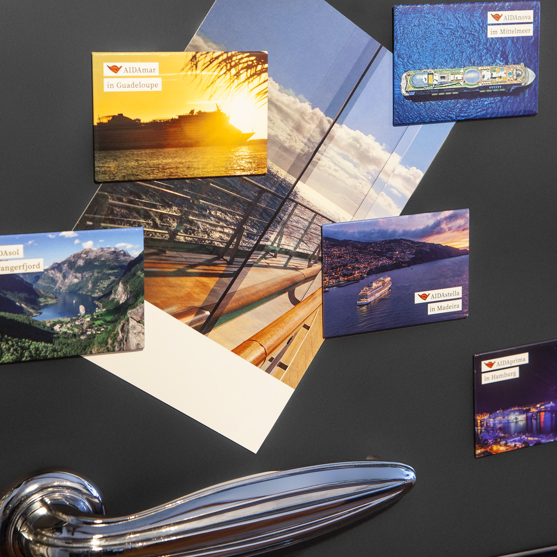 Verleihen Sie Ihrem Zuhause einen Hauch AIDA Urlaubsfeeling. Die magnetischen Schmuckstücke im maritimen Style verleihen jedem Kühlschrank einen besonderen Look. Der AIDA Magnet hält Einkaufszettel, kurze Nachrichten, Postkarten oder auch den Stundenplan Ihrer Kinder sicher fest. Ein ideales Geschenk für Familie, Freunde und AIDA Fans.