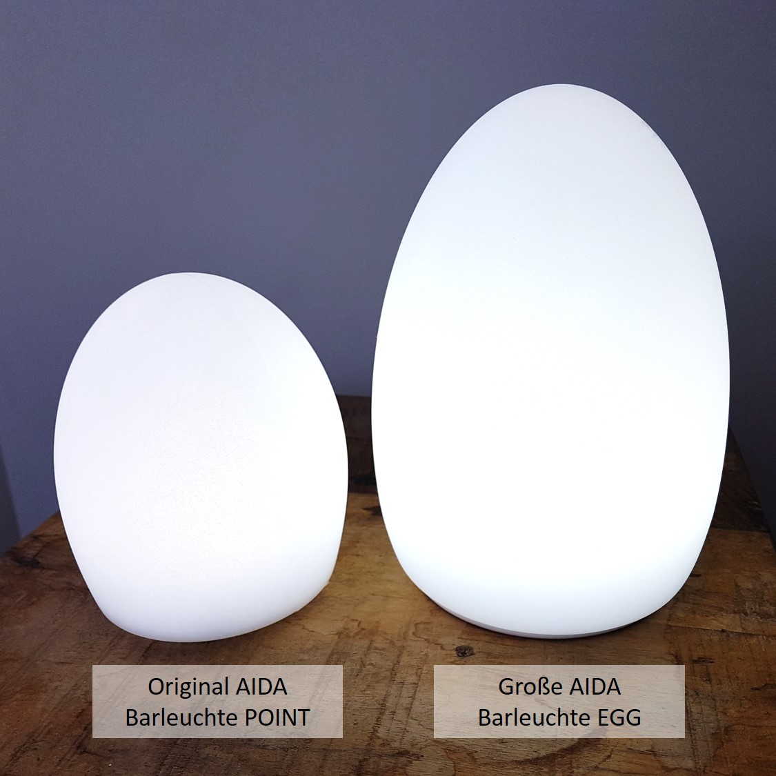 Die originale AIDA Barleuchte POINT erstrahlt in sehr schönem warmen Licht. Nach dem Aufladen können Sie