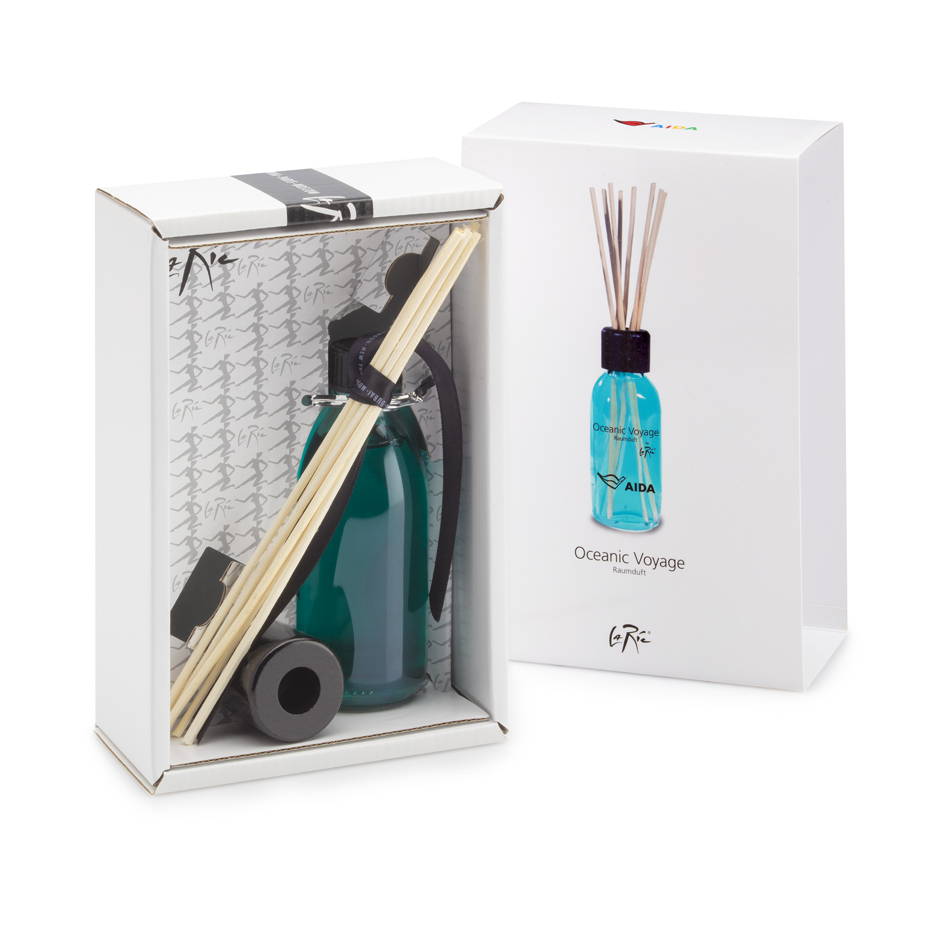 Der Duft Ihrer Seereise: Oceanic Voyage Hüllen Sie sich in einen Duft, der Ihre Sinne berührt und Sie auch nach Ihrer Reise zu Hause an das Meer und die Freiheit erinnert! Die Produkte der AIDA Spa-Kollektion Oceanic Voyage wurden von der Luxuspflegemarke La Ric entwickelt und duften herrlich nach Apfel, Jasmin und Melone. Der Raumduft, das in zwei Größen erhältliche Parfüm und das aromatische Ganzkörper-Peeling machen den Wellnessurlaub in den eigenen vier Wänden perfekt.