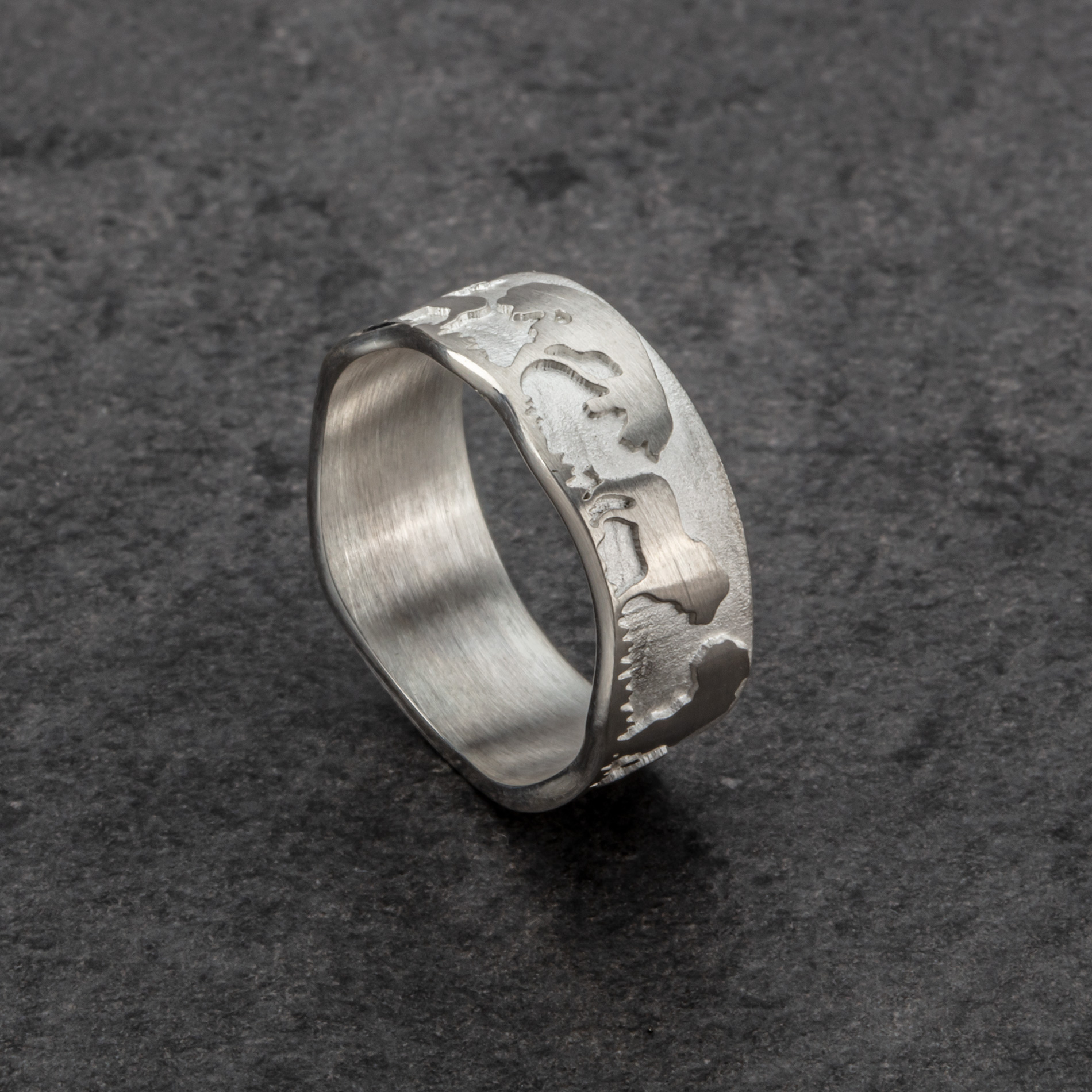 Der Ring Afrika aus 925er Sterling-Silber nimmt Sie gedanklich mit auf die Reise in das wundervolle Afrika. Das Steppengras in Kombination mit typischen Tieren aus Afrika am unteren Rand des Ringes unterstreicht den wilden Charakter Ihrer Reise. Er besitzt ausgezeichnete Trageeigenschaften, ist formschön und solide gearbeitet. Der Ring wird in einer Rostocker Goldschmiedewerkstatt handgefertigt und hat je nach Ringweite eine Ringbreite von ca. 9 bis 10mm.