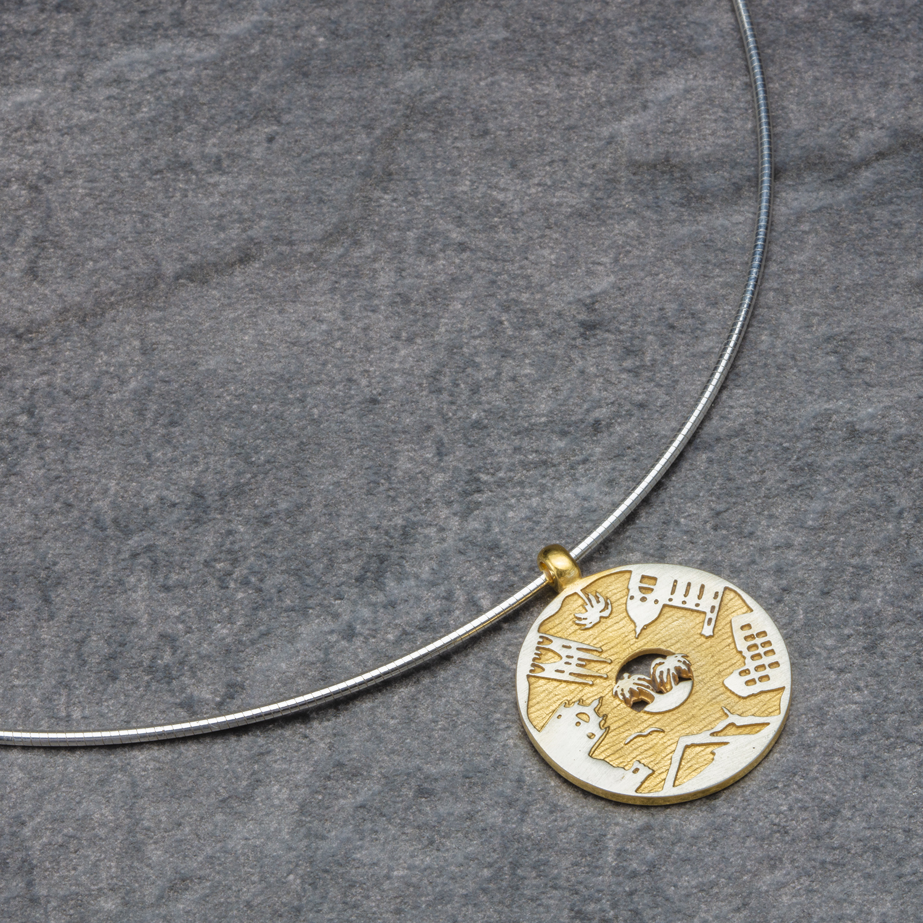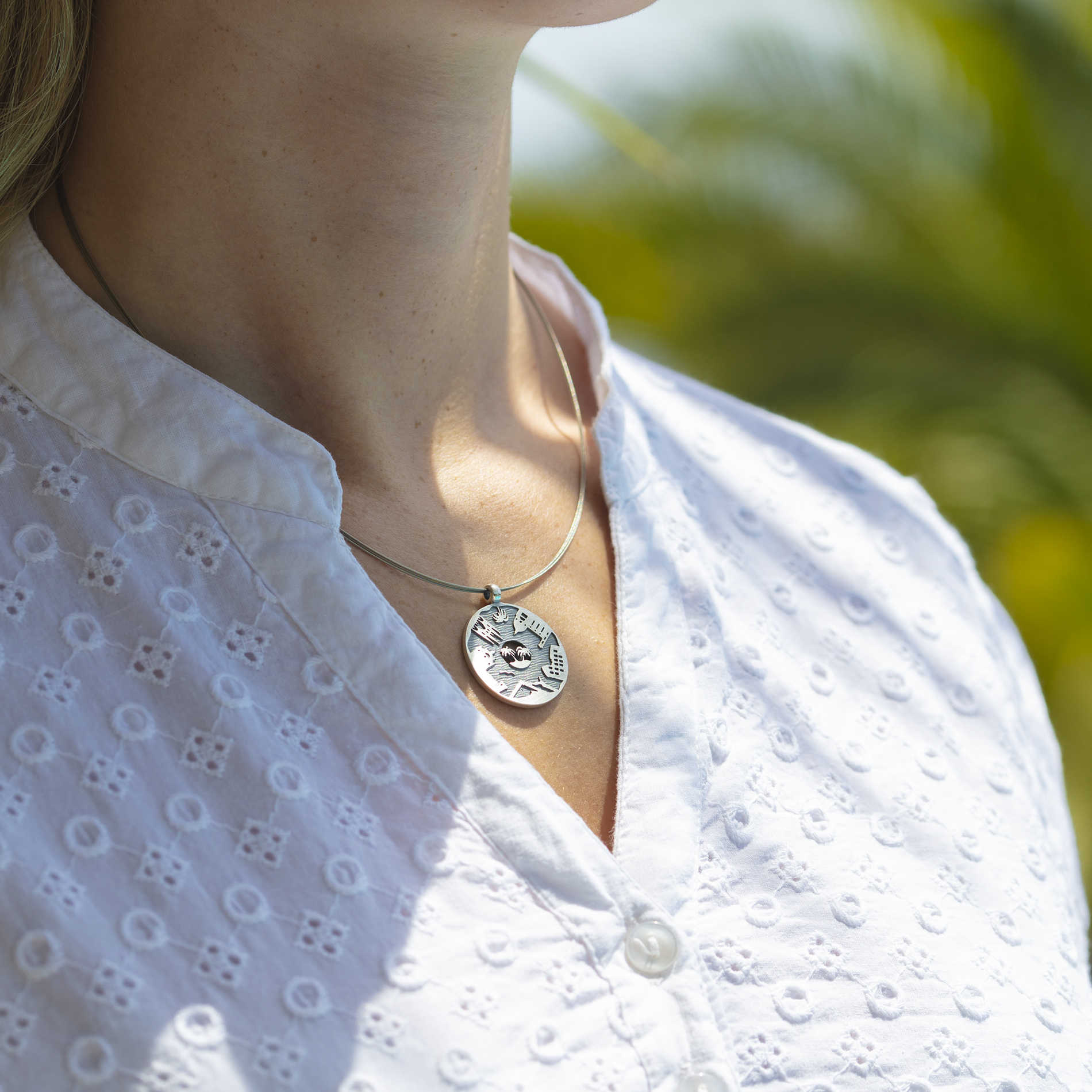 Der Routenanhänger Westliches Mittelmeer aus 925er Sterling-Silber nimmt Sie mit auf die Reise in das wundervolle westliche Mittelmeer. Der Anhänger wird in einer Rostocker Goldschmiedewerkstatt handgefertigt und hat einen Durchmesser von ca. 26,5 mm.