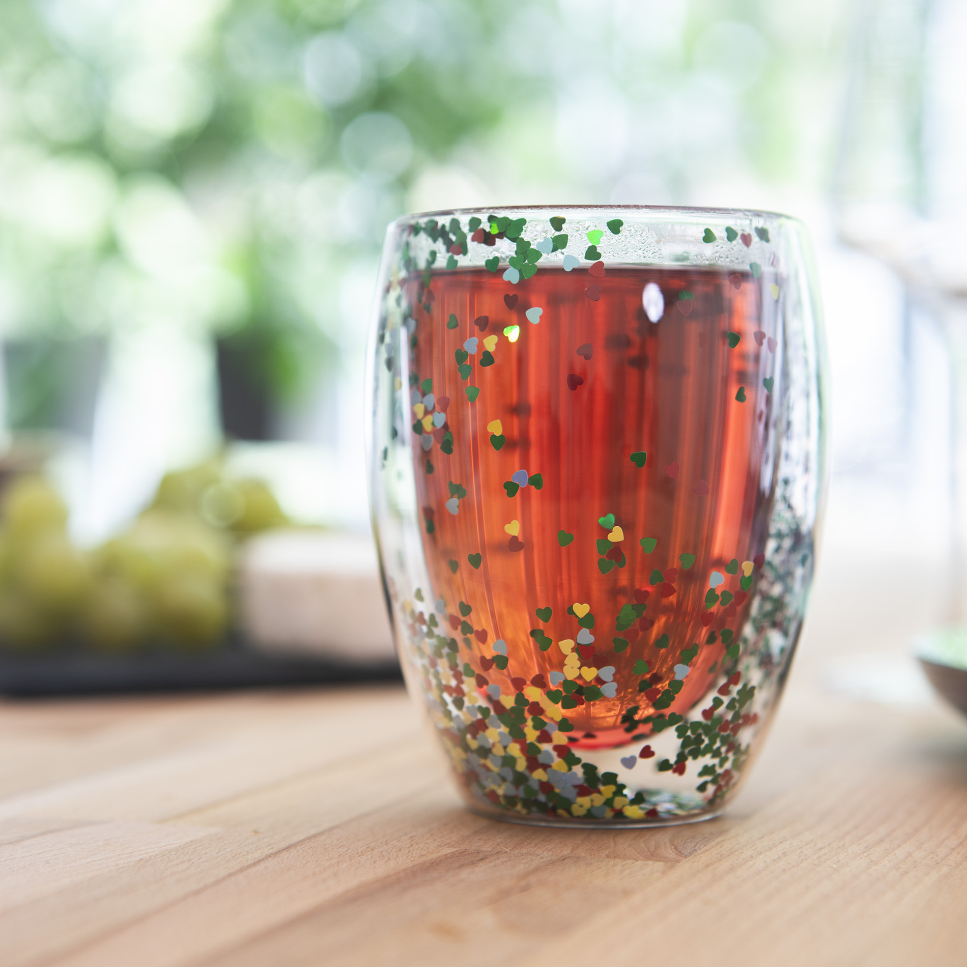 Starten Sie den Tag mit einer Portion Glitzer! Die isolierende Wirkung des doppelwandigen Trinkbechers hält Getränke länger warm oder kalt. Genießen Sie Ihren Kaffee, Cappuccino, Tee oder kalte Säfte in vollen Zügen ohne die Temperaturen an den Händen zu spüren.