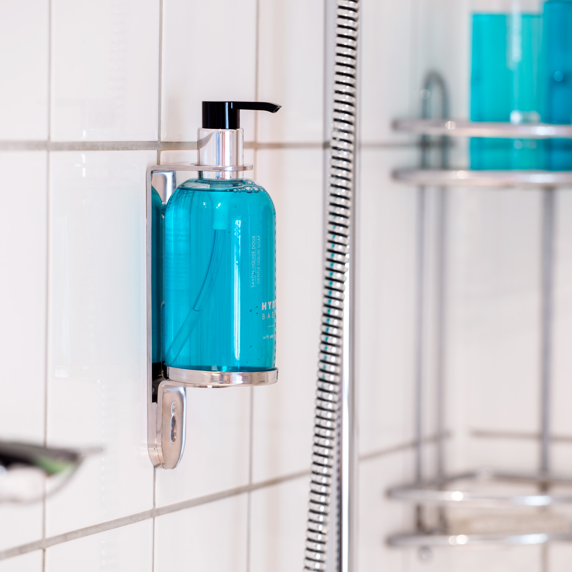 Diese chromfarbene Halterung für Pumpspender überzeugt durch klare Linienführung und reduziertes Design und lässt sich kinderleicht an- und abschrauben! Die Wandhalterung wurde aus dem professionellen Einsatz übernommen und für den Gebrauch in den eigenen vier Wänden weiter entwickelt.